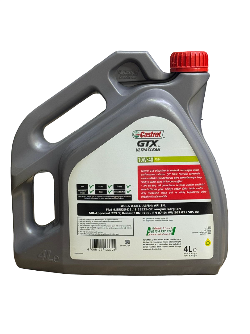 Castrol GTX 10W-40 4 lt motor yağı, güçlü motor koruması sağlayarak aşınma ve çamur tabakalarını önler. Gelişmiş formülü ile motorunuzun performansını artırır ve uzun motor ömrü sunar. Her mevsim kullanılabilir, yakıt verimliliğini destekler. Ideal seçim.